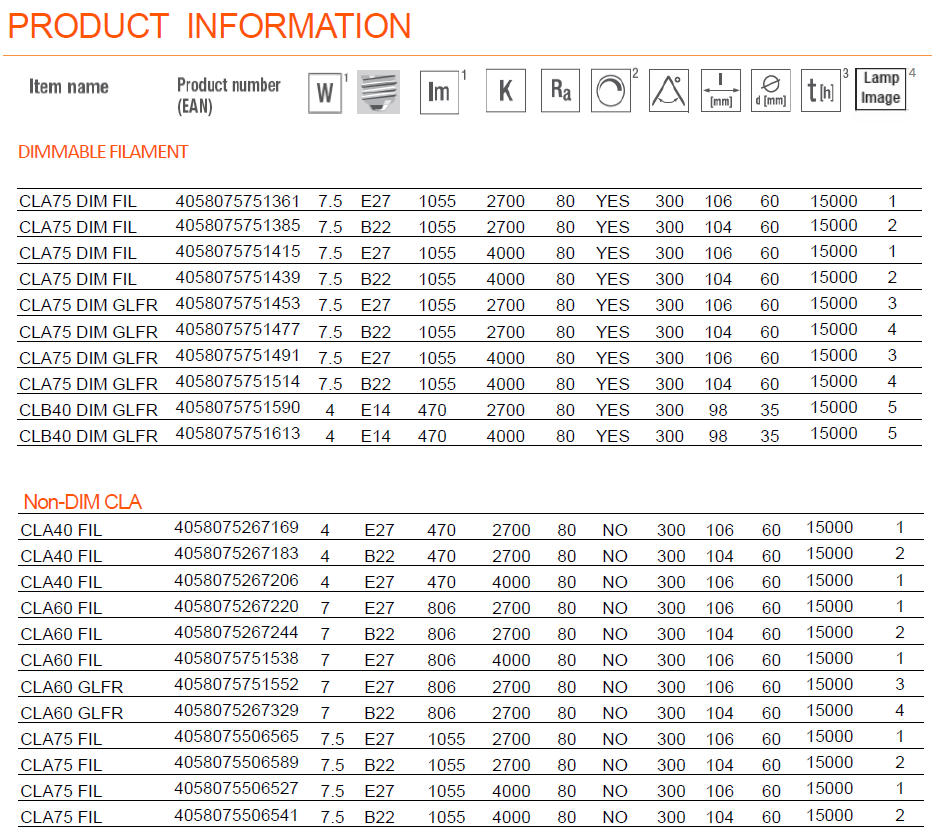 Colour temperature: 2700K